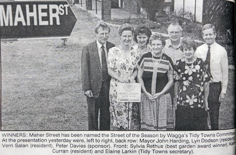 - Maher Street was named as the Street of the Season by Wagga’s Tidy Town Committee.
