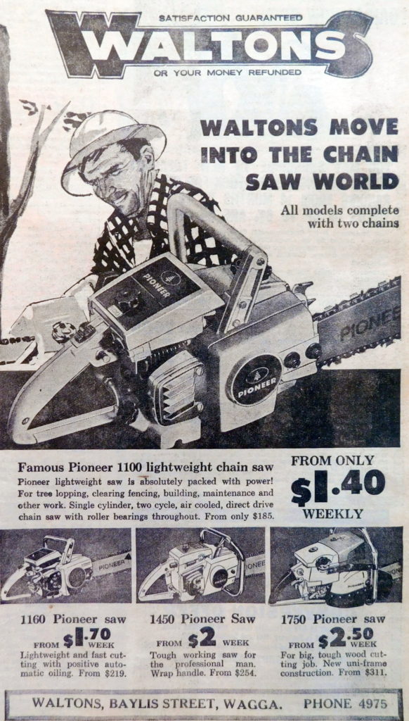 - Walton’s are selling famous Pioneer chainsaws from only $1.40 weekly.