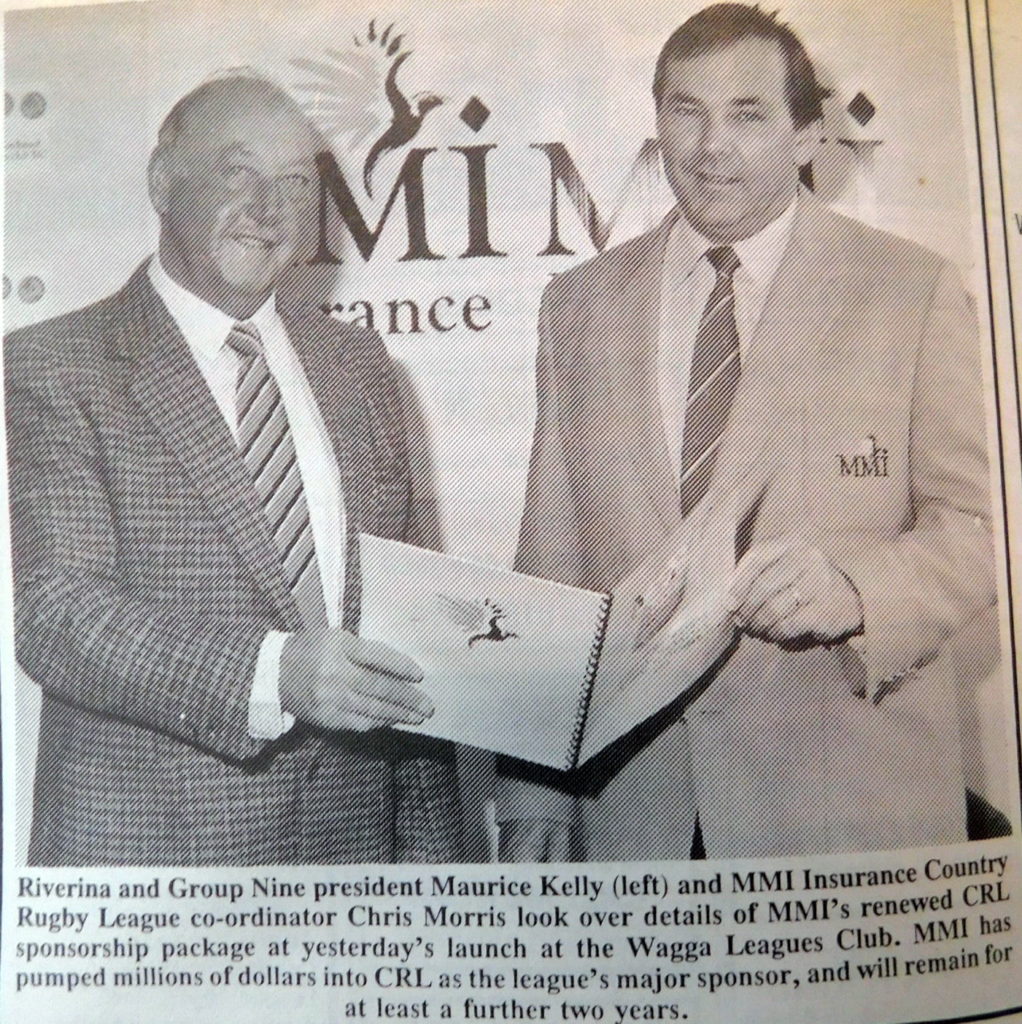 · Chris Morris from MMI Insurance and Group Nine President, Maurice Kelly, launched a renewed MMI Insurance Country Rugby League sponsorship.