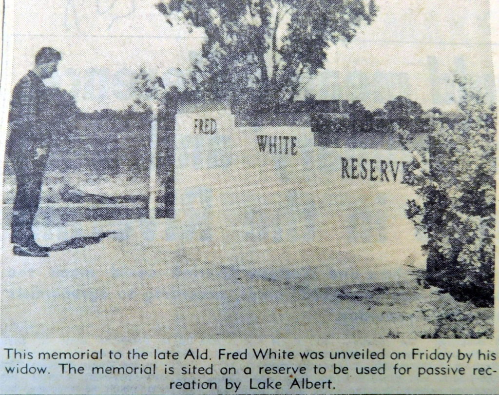 · A large number of people attended the unveiling of a plaque in memory of the late Fred White at the reserve to be named in his honour in Lakeside Drive.