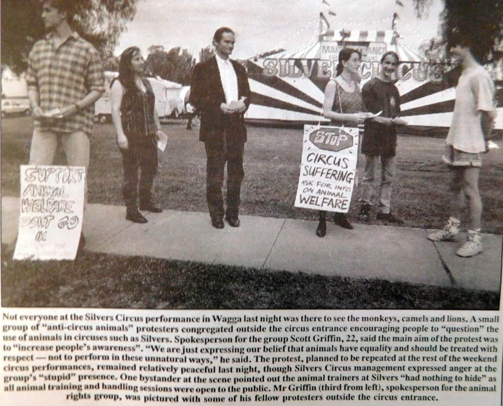 - Animal rights protesters gathered outside the entrance to Silver’s Circus in Wagga.