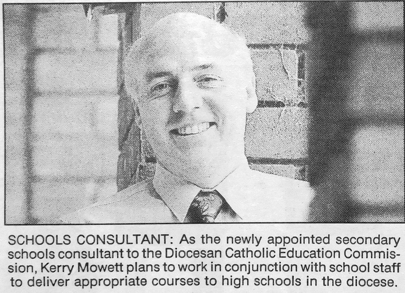 - Kerry Mowett has been appointed as secondary schools’ consultant to the Diocesan Catholic Education Commission.