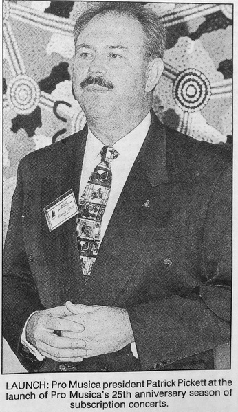 - President, Patrick Pickett announced details of Pro Musica’s 25th anniversary season of five subscription concerts including OZ Opera, the touring arm of the Australian Opera which will perform Mozart’s opera The Magic Flute.