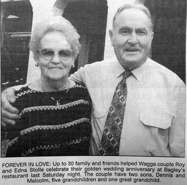 - Up to 30 family and friends helped Roy and Edna Stolle celebrate their golden wedding anniversary at Bagley’s restaurant.
