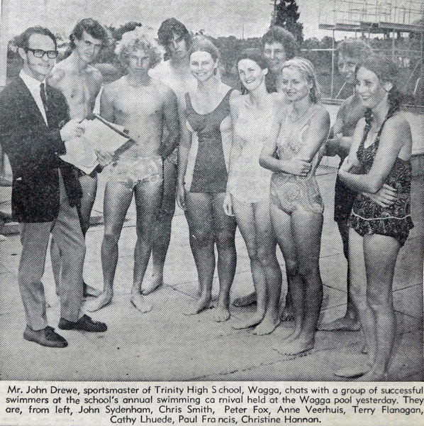 - Eight swimming records were recorded at the fourth annual Trinity High School Annual Swimming Championships at Wagga City Baths.