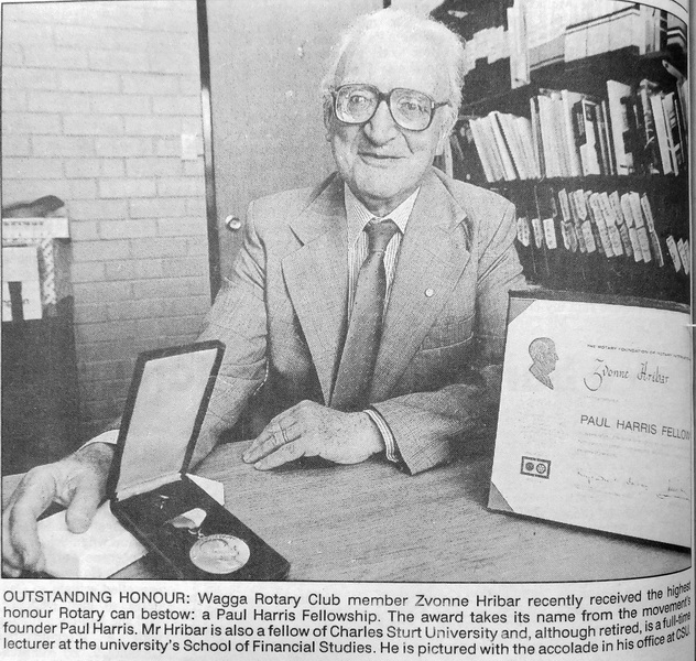 - Wagga Rotary Club member, Zvonne Hribar, was awarded Rotary’s highest honour, a Paul Harris Scholarship.