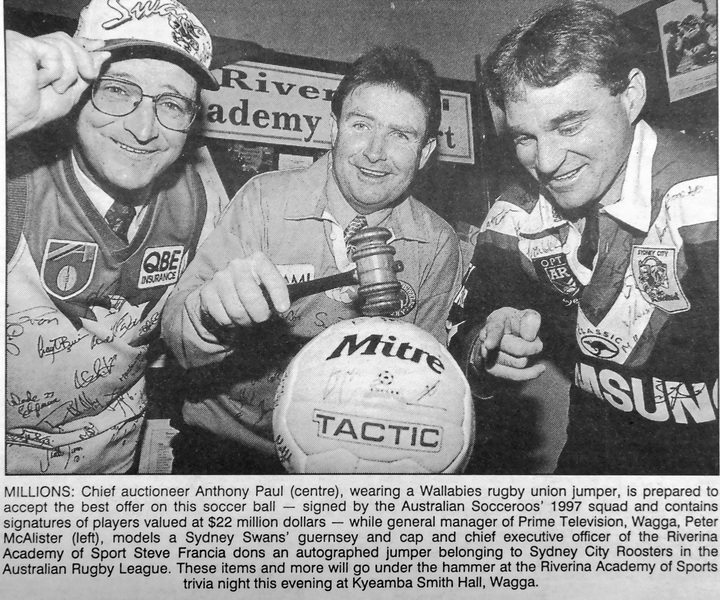 - Anthony Paul was the chief auctioneer at a fundraising auction of sporting memorabilia held by the Riverina Academy of Sport during a trivia evening held at the Kyeamba Smith Hall.