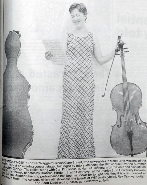 - Former Wagga musician, Clare Brassil who now resides in Melbourne was one of the performers at an evening concert staged last night by tutors attending the Summer School for Strings.