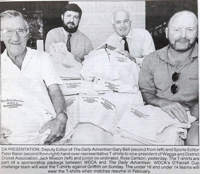 - Representative T-shirts were presented, as part of a sponsorship package, by the Daily Advertiser to the Wagga and District Cricket Association.