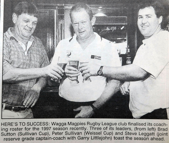 - Magpies’ officials re-signed Steve Quinn as their senior coach with reserve grade duties to be shared by Garry Littlejohn and Steve Leggatt and Peter Sullivan to guide the club’s Weissel Cup challenge.