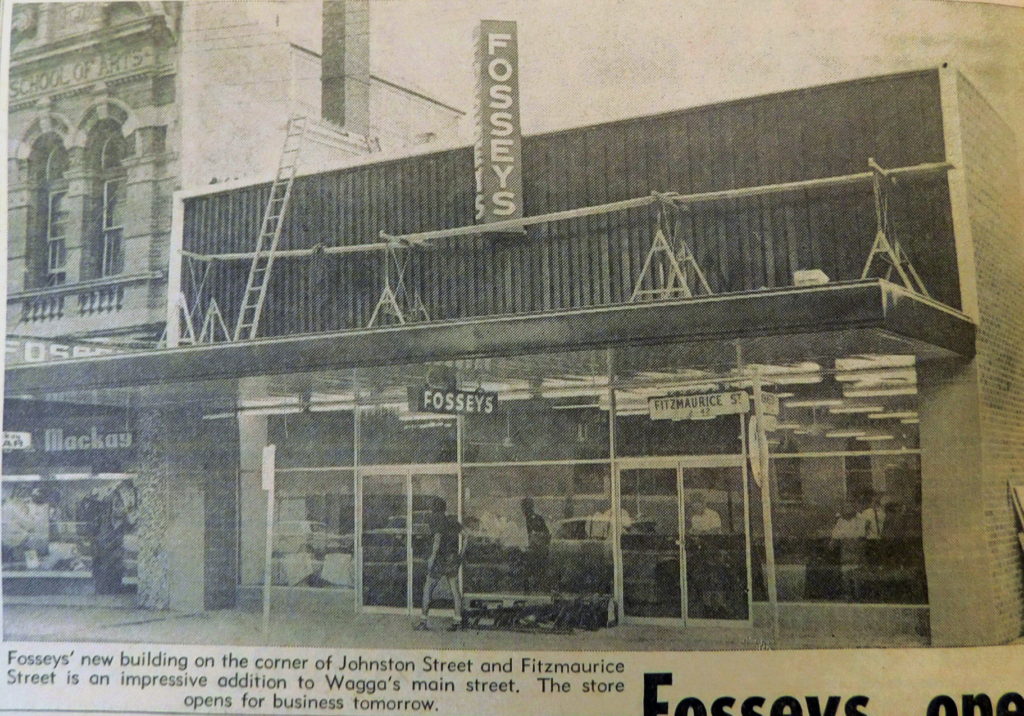 - Fosseys who first came to Wagga in 1930 has opened a new store on the same site on the corner of Johnston and Fitzmaurice Streets.