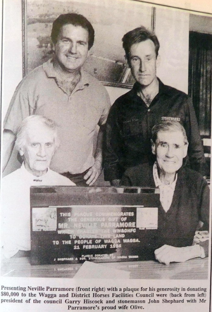 - A generous donation of $80,000 by Ladysmith man, Neville Parramore, to the Horses Facilities Council for the Kooringal Road multi-purpose centre was recognised by the presentation of a plaque.