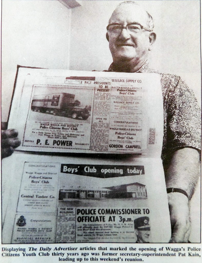 - Former Wagga Police Citizens Youth Club secretary-manager, Pat Kain, is among those attending a reunion to celebrate the 30th anniversary of the club.