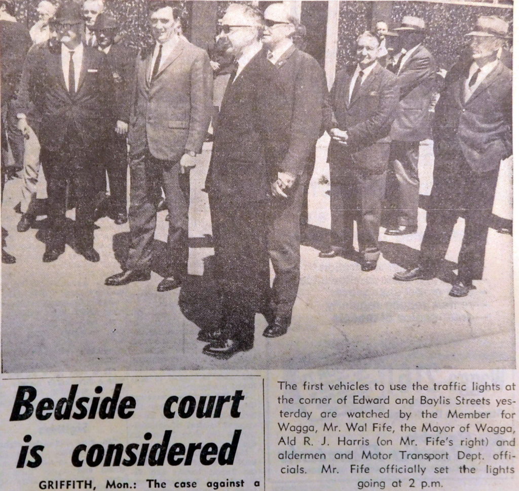 - Member for Wagga, Wal Fife officially switched on the new traffic lights on the corner of Edward and Baylis Street.
