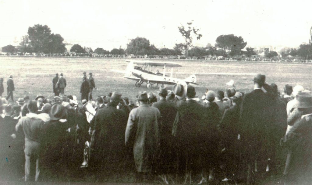On 17th March 1928 thousands flocked to the Wagga showground when pioneer aviator, Bert Hinkler, landed his biplane at Kyeamba Smith Hall, where he was greeted by mayor, WF Day and Town Clerk R Emblem.