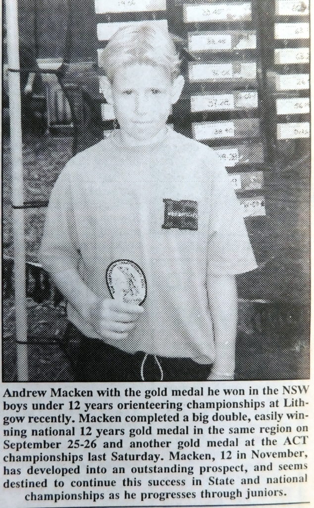 - Andrew Macken won the NSW boys under 12 orienteering championship at Lithgow having earlier won the same event at the ACT Championships.