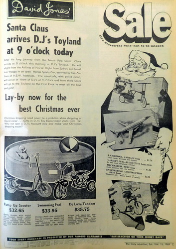 - Santa Claus arrives from the North Pole at David Jones Toyland this week.