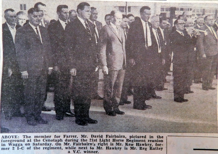 - Local Federal member, David Fairbairn was one of 200 guests who attended the annual reunion of members of the 21st Light Horse Regiment held at the Wagga Leagues Club.