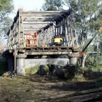 THE Hampden Bridge is falling down, gradually. Demolition of Wagga’s iconic river crossing is under way, with the nine timber spans on the bridge’s eastern approach progressively dismantled last week.