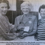 From the Daily Advertiser in April 1992 President of the Wagga Branch of Red Cross, Meg Sheaffe, is pictured presenting long service medals to Mavis Duff and Sue Strong.