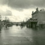 Baylis Street looking south from Morrow Street during the 1891 flood. On the left is the Advance Australia Hotel and on the right the Exchange Hotel