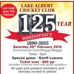 Lake Albert Cricket Club are celebrating their 125 Anniversary on 20th February.