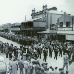 1952 Anzac Day March: This photo is taken in Baylis Street from the present location of Myers and Best Place.