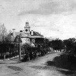 The Wagga Court House and Post Office in 1885. The court house shown here was constructed in the mid 1850s and the post office building on top of the hill on Fitzmaurice Street, which still exists today, was built in 1885. (CSURA RW5)