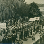 Munitions workers in 1943 marching in Baylis Street during an eight-hour procession. The Munitions Factory was situated at the corner of Murray and Forsyth Streets and was converted into the Dunlop Factory after the war.