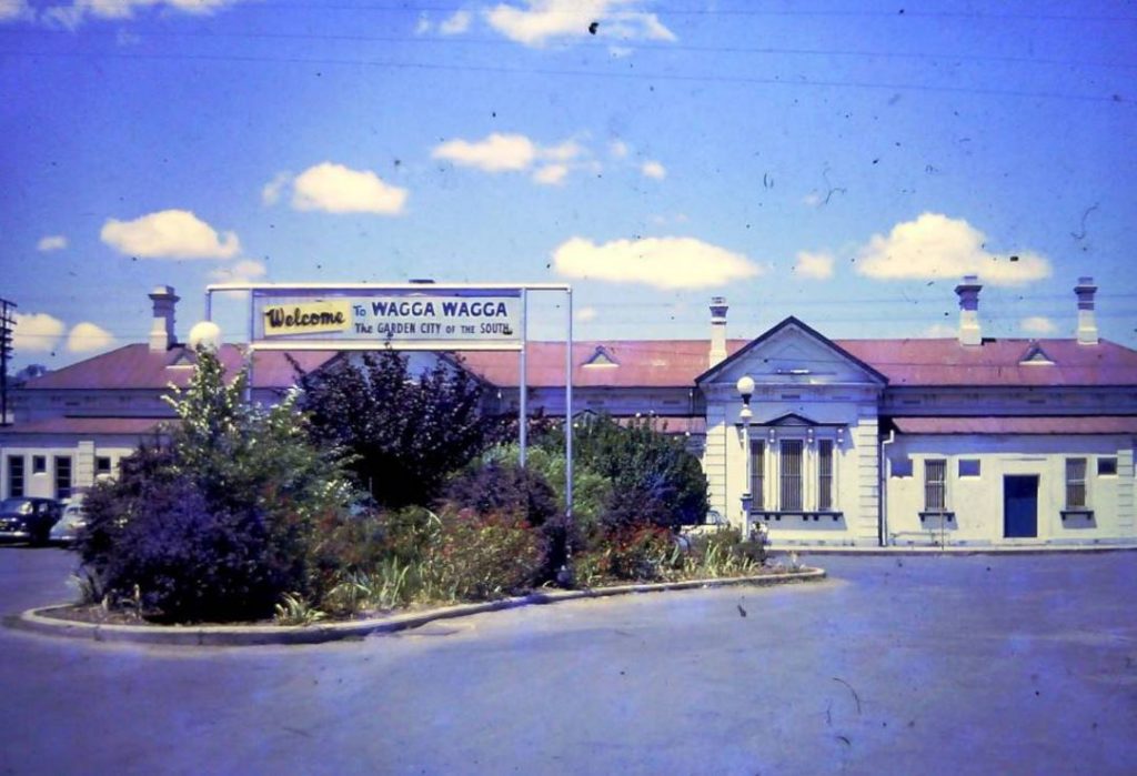 Wagga Railway Station in the 1950s. Back then Wagga was widely promoted as the “Garden City of the South”.