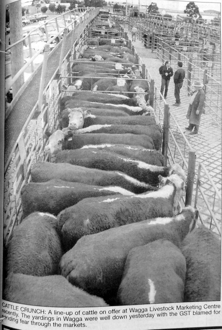 - Cattle yardings in Wagga fell dramatically earlier this week with the new Goods and Services Tax (GST) blamed for keeping farmers at home.