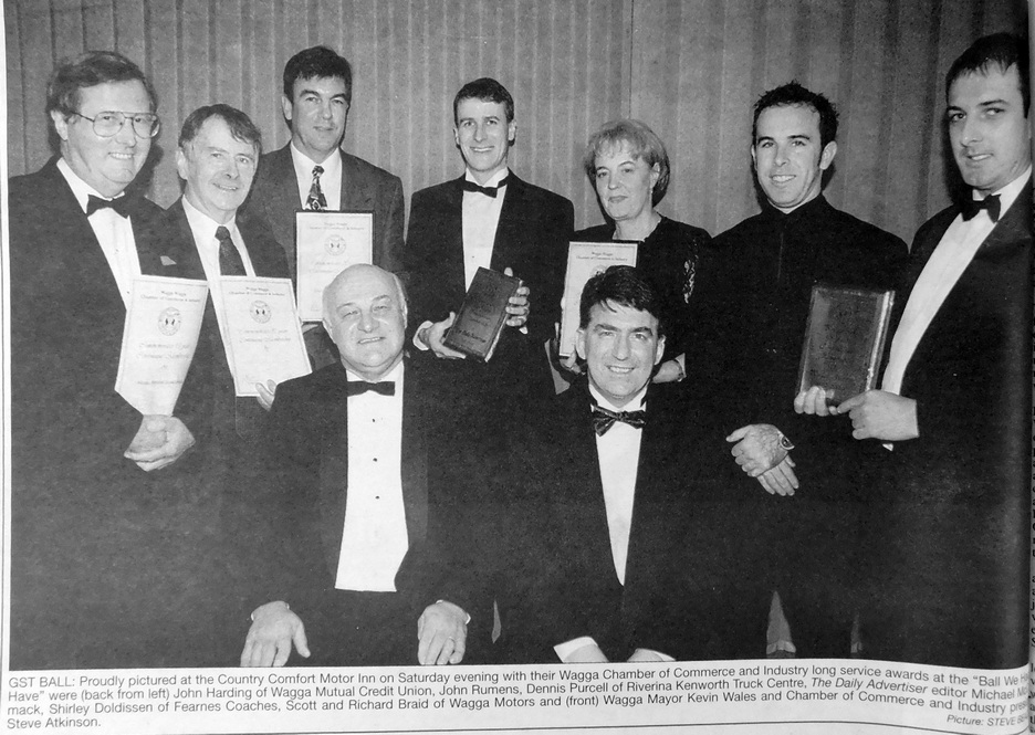 - The Wagga Chamber of Commerce and Industry presented long service awards to John Harding, John Rumens, Dennis Purcell, Michael McCormack, Shirley Doldissen and Scott and Richard Braid.