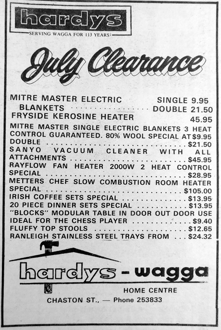 - Hardy’s July Clearance includes a Fryside kerosine heater for $45.95, single electric blankets from $9.95 and a Rayflow fan heater with 2 heat control for $28.95.