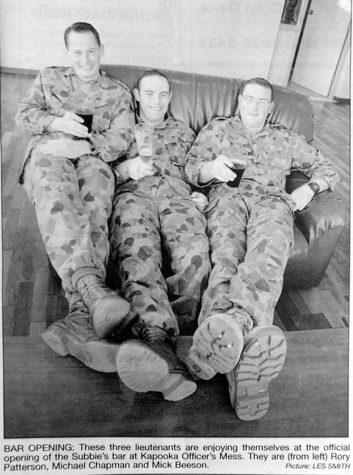 - Rory Patterson, Michael Chapman and Mick Beeson were among those attending the official opening of the Subbie’s bar at the Kapooka Officer’s Mess.