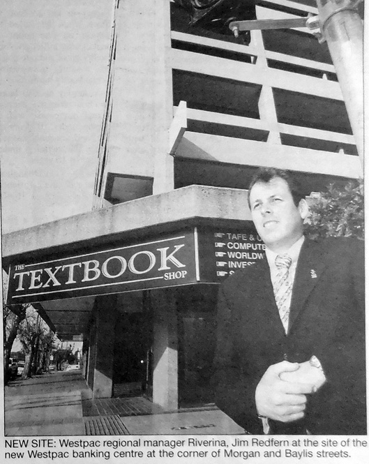 - Westpac Wagga regional manager, Jim Redfern said that existing Westpac branches in Fitzmaurice Street would be closed and replaced by a single centralised financial centre on the corner of Morgan and Baylis streets.