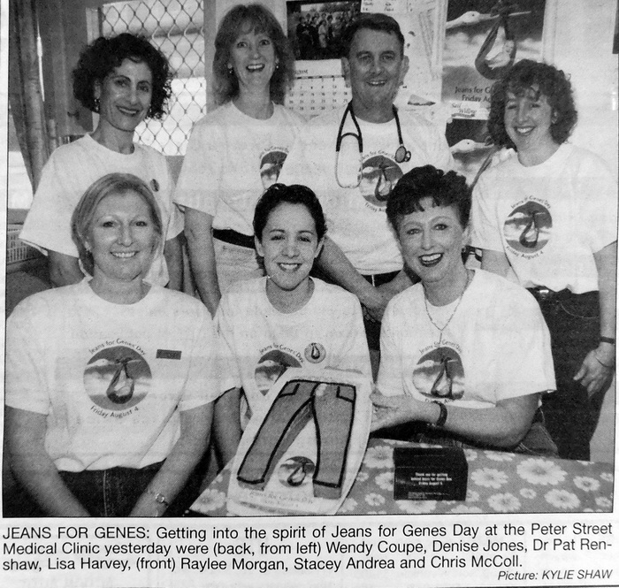 - Wendy Coupe, Denise Jones, Dr Pat Renshaw, Lisa Harvey, Raylee Morgan, Stacey Andrea and Chris McColl from the Peter Street Medical Clinic are pictured participating in “Jeans for Genes” day.