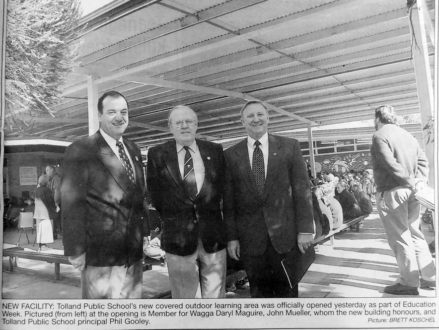 - Tolland Public School’s new covered outdoor learning area, which honours John Mueller, was officially opened.