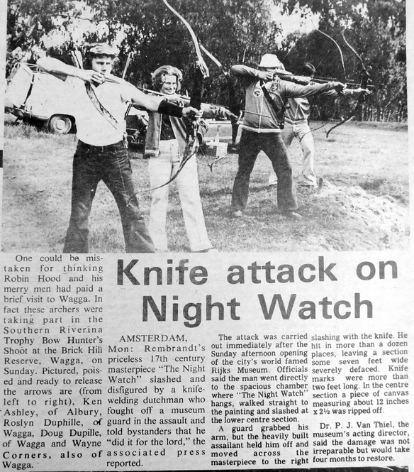 - Ken Ashley of Albury, and Roslyn and Doug Dupille of Wagga were among those competing in the Southern Riverina Trophy Bow Hunter’s Shoot at Brickhill Reserve.