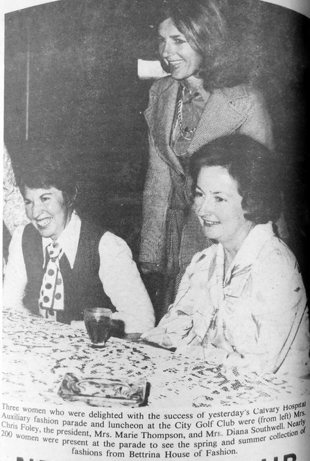 - Chris Foley, Marie Thomson and Diana Southwell were among almost 200 women who attended a Calvary Hospital Auxiliary fashion parade and luncheon at the City Golf Club.