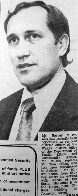 - Harvey Milson has been appointed as resident district officer for the Department of Youth, Ethnic and Community Affairs, replacing Tom Fallon who has been transferred to Sydney.