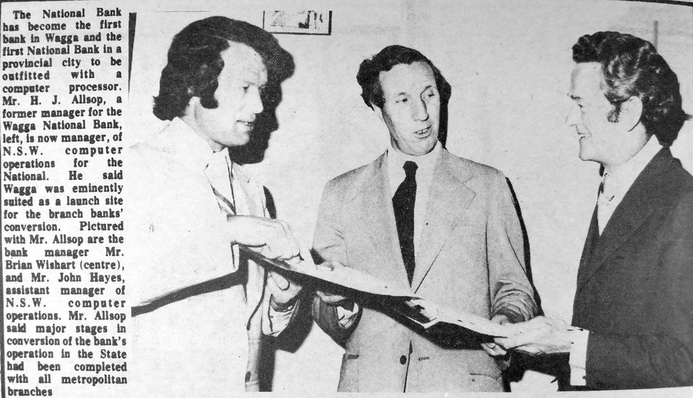 - Wagga’s National Bank has become the first bank in Wagga and the first National Bank in a provincial city to be outfitted with a computer processor.