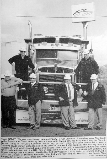 - Wagga based heavy towing company Re-Car Crane and Towing has won a contract to provide towing services in Sydney during the Olympic Games.