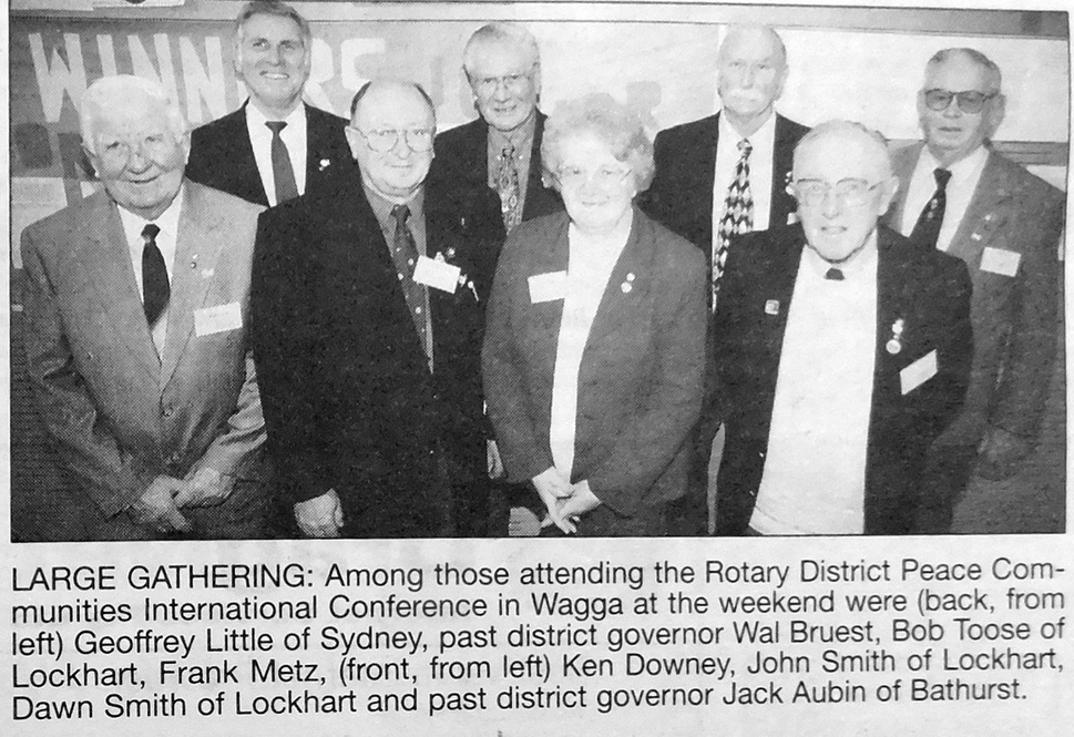 - Pictured attending the Rotary District Peace Communities International Conference at the weekend were Geofrey Little, Wal Breust, Bob Toose, Frank Metz, Ken Downey, Ken Smith, Dawn Smith and Jack Aubin.
