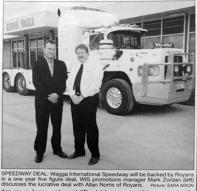 - Wagga International Speedway has been backed by Royans in a one year five figure deal.