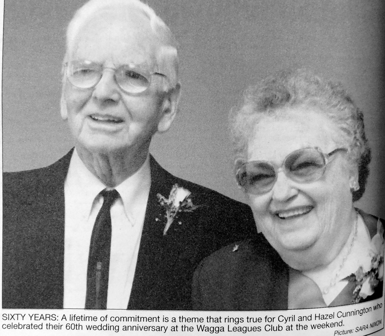 - Cyril and Hazel Cunnington celebrated their 60th Wedding Anniversary at the Wagga Leagues Club.