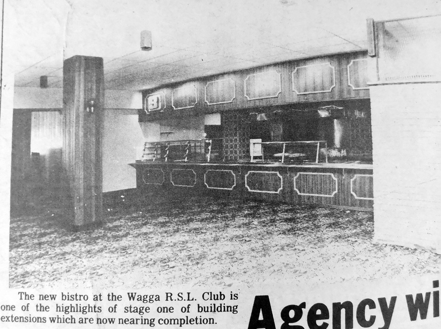 - The new bistro at the Wagga RSL Club, capable of accommodating 250 people, is nearing completion.