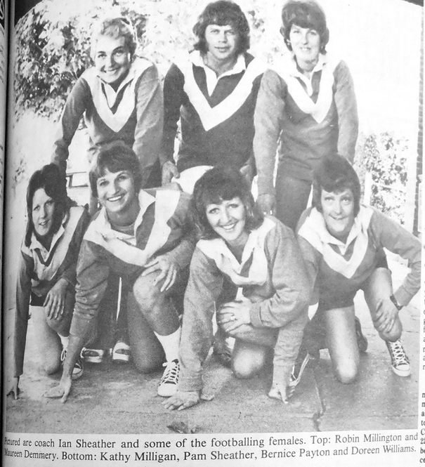 - A team of “would-be” female footballers including Robin Milligan, Maureen Demmery, Kathy Demmery, Kathy Milligan, Pam Sheather, Bernice Payton and Doreen Williams have challenged a team of “once-were” players to a game of touch Rugby League with proceeds going to Miss Kathy Milligan an entrant in the Miss Wine Quest aiding the NSW Spastic Children’s Centre.