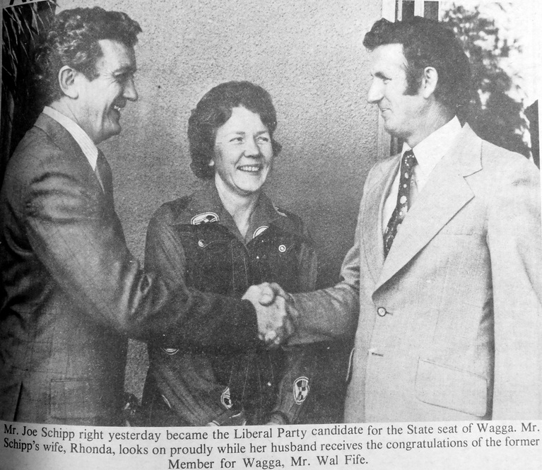 - Joe Schipp became the Liberal Party candidate for the State seat of Wagga.