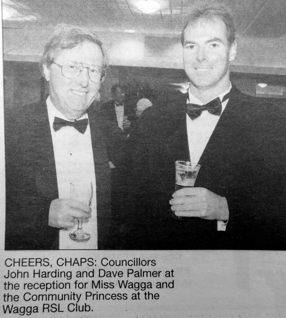 - Councillors John Harding and Dave Palmer are pictured at a reception held for Miss Wagga and the Community Princess at the Wagga RSL Club.