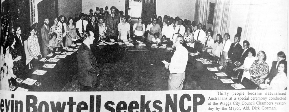 - Thirty people coming from countries including England, Kenya, Scotland, Malaya, Singapore, Greece, India, Italy, Northern Ireland, Southern Rhodesia and Yugoslavia were naturalised Australians at a special ceremony conducted by Mayor, Ald Dick Gorman.